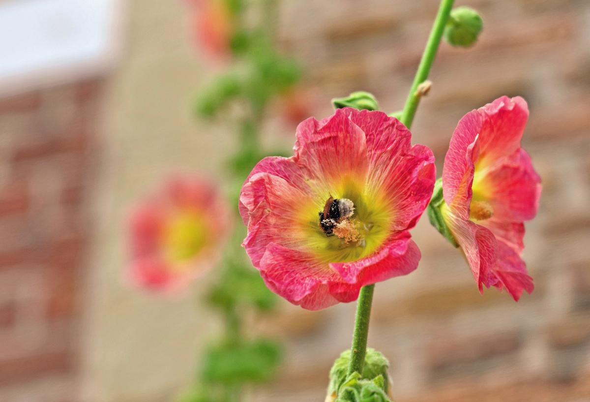 Stokroos in een straatje in Veere