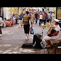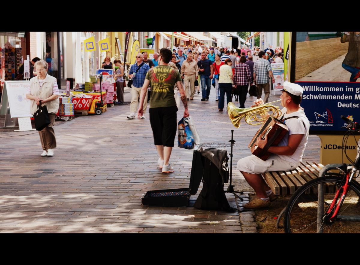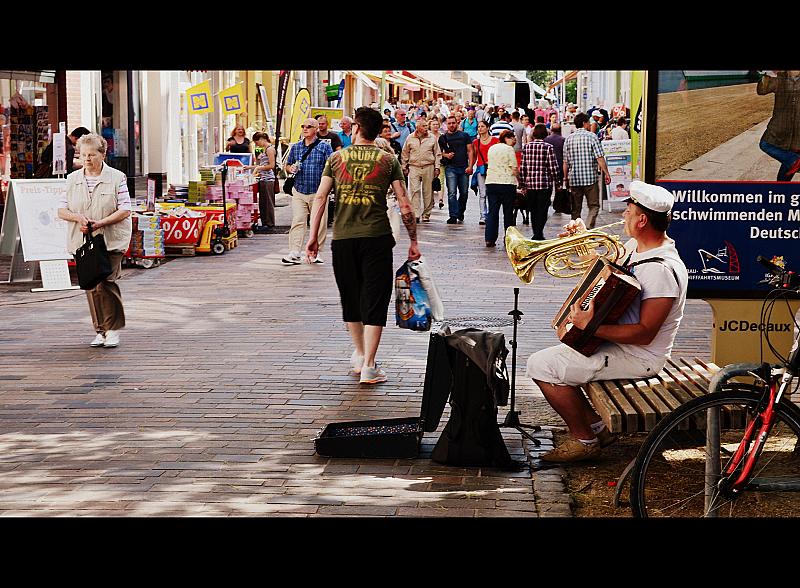 Straatmuzikant in Rostock Duitsland