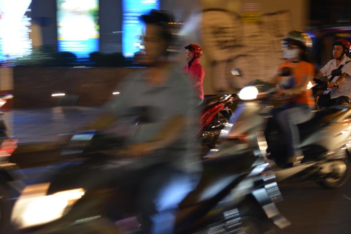 Snorrende brommers tijdens nachtelijke uurtjes in Vietnam