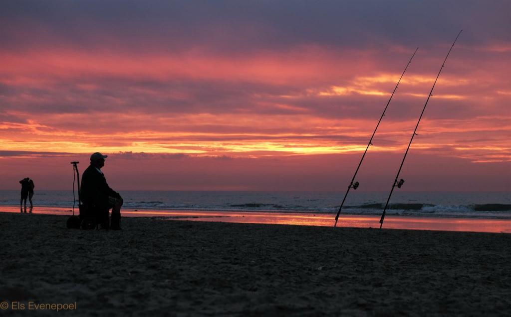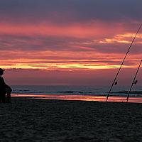 Zeevissen vanop het strand. Het zand, de zoute lucht, de krijsende meeuwen,... Strandvissen heeft een speciale demensie, zeker na een warme zomerse septemberdag. De rood/oranje zon zakt langzaam in de stille Noordzee. De wind neemt af en het wordt steeds stiller op het strand. De avondsessie gaat beginnen.