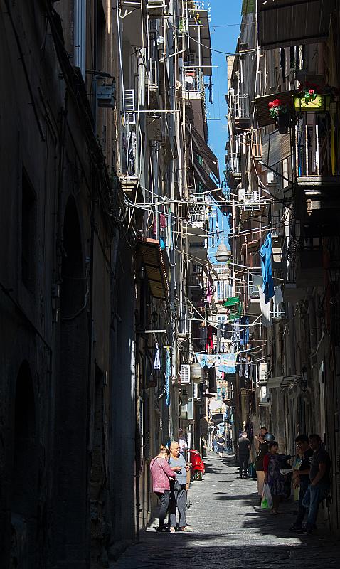 Wandelen in de nauwe straatjes van de binnenstad in Napels.