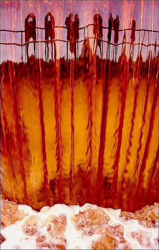 Dit is onze reflectie in vallend stuwwater. Water in beweging.