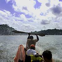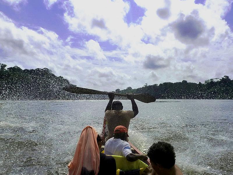 Tijdens een jungletour in Suriname kregen we met verschillende stroomversnellingen te maken. De een heftiger dan de ander. Bij deze had ik het gevoel dat het een heftige zou worden, wat de bootsman voorop ook mooi illustreert. M'n camera is niet nat geworden...