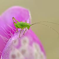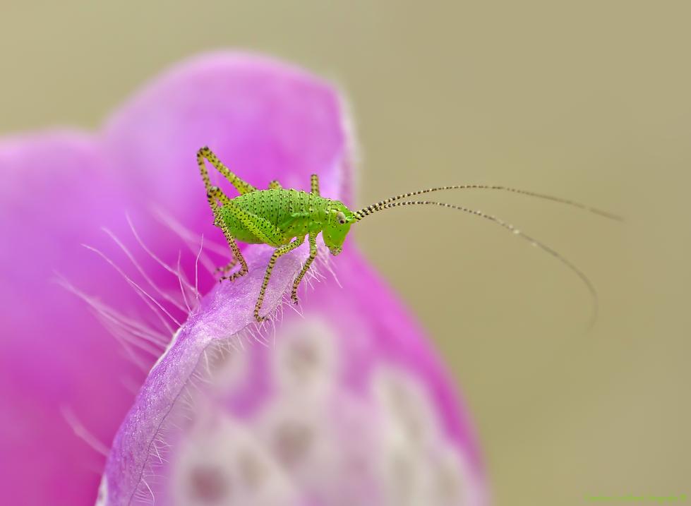 Een klein Struik-sprinkaantje op Vingerhoedskruid.