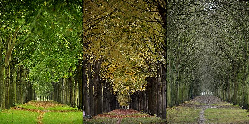 Drie (bijna) dezelfde foto's. Een in de zomer, een in de herfst, en een in de winter...