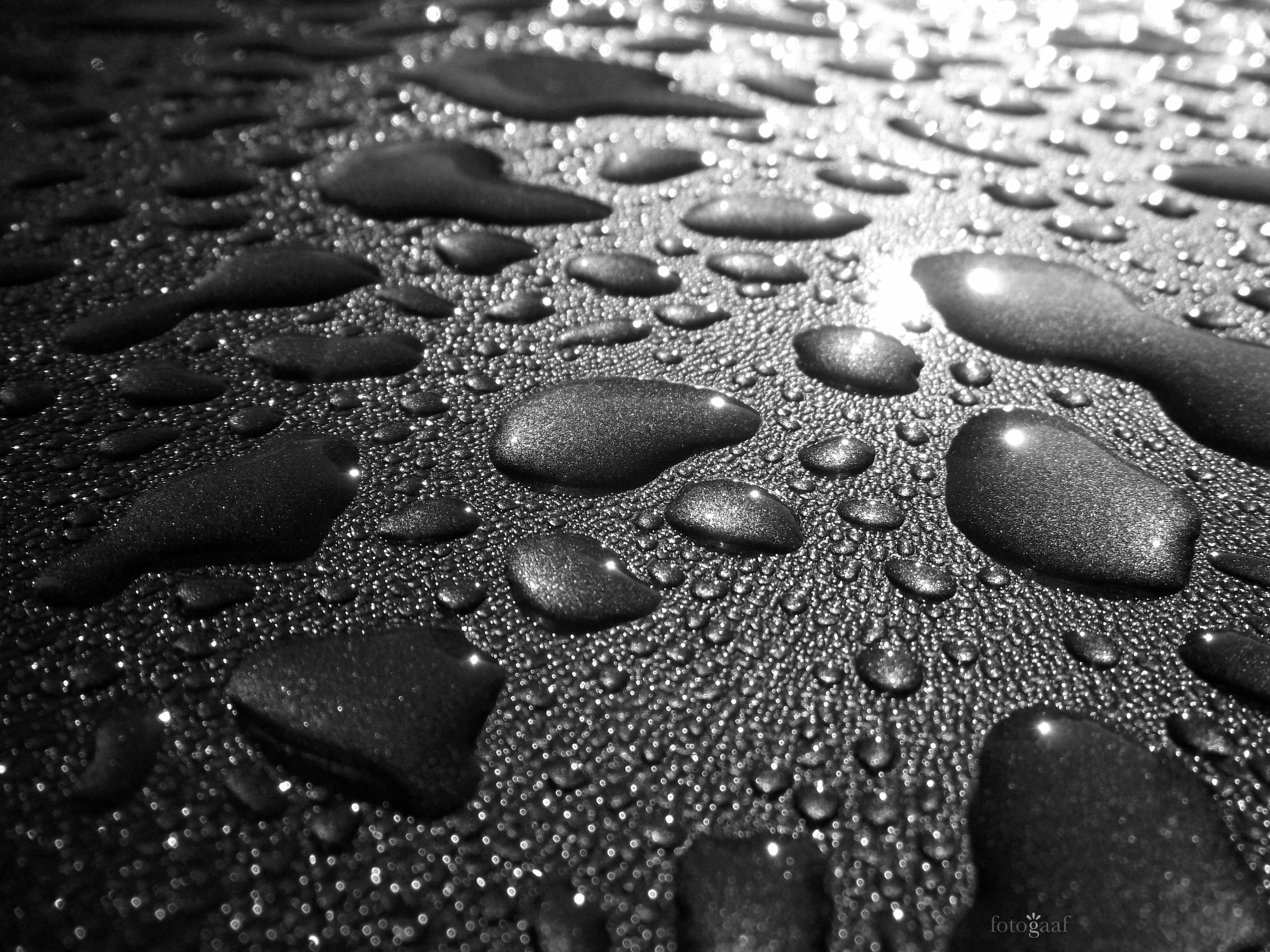 Aangekomen bij mijn auto zag ik hoe prachtig deze regendruppels op mijn pas gewassen auto lagen te pronken. Het vroege ochtendlicht werpt een prachtige schad