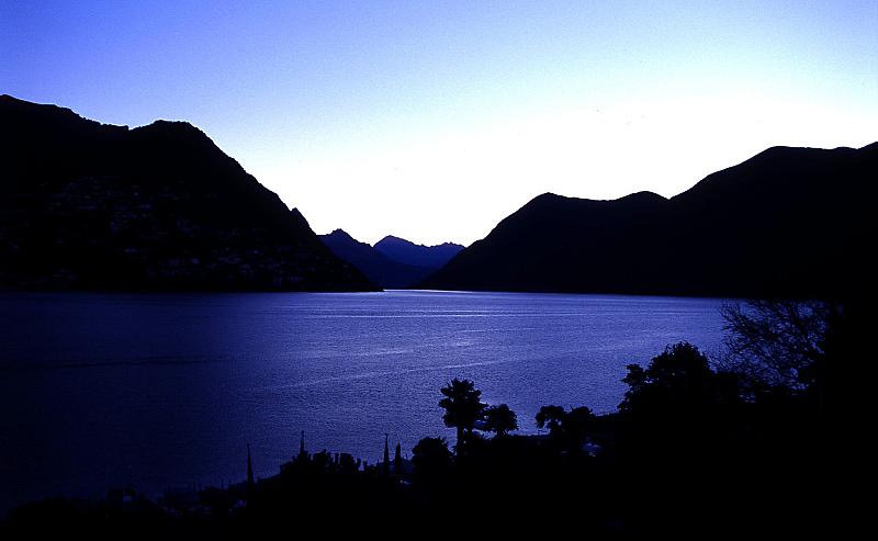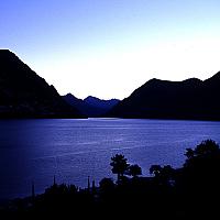 Zonsopkomst bij meer van Lugano.