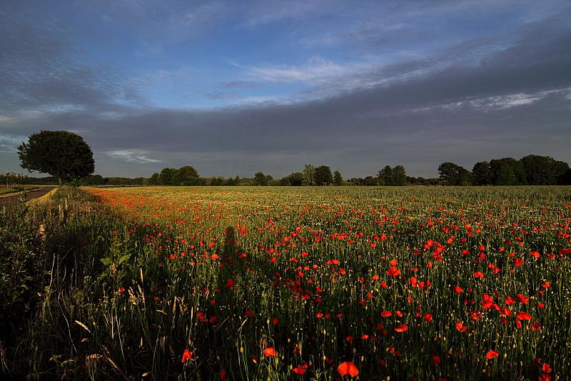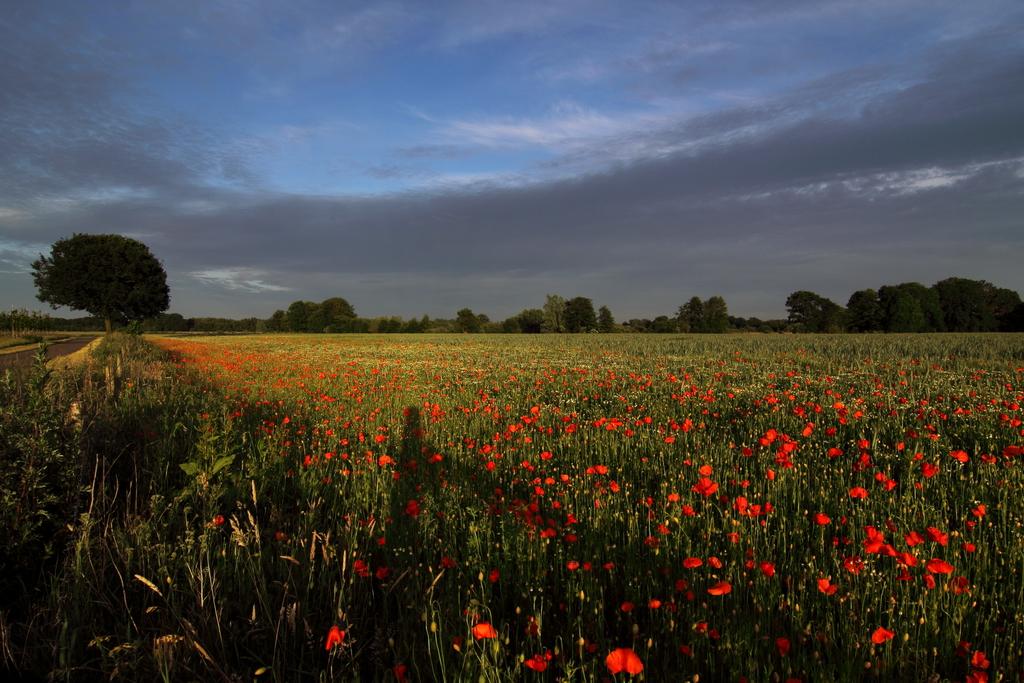 BEwerking is zeer beperkt. Beetje recht gezet, contrast en scherpte en klaar is tie. De kleuren en de klaprozen spreken me erg aan in deze opname. De lucht maakt het mooi af!