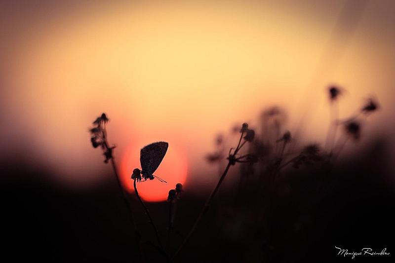Tijdens een prachtige zonsondergang het silhouette vastgelegd van dit icarusblauwtje.