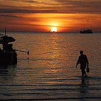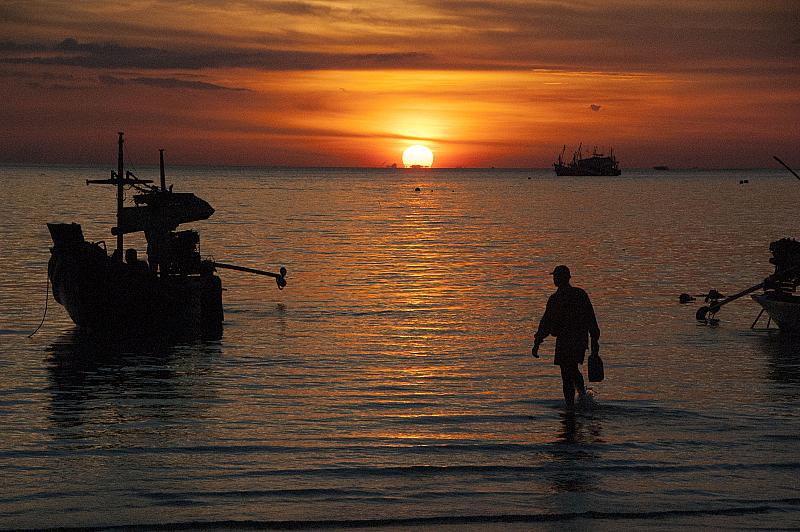 Fisherman still at work while the sun is setting on the Thai Island Koh Tao