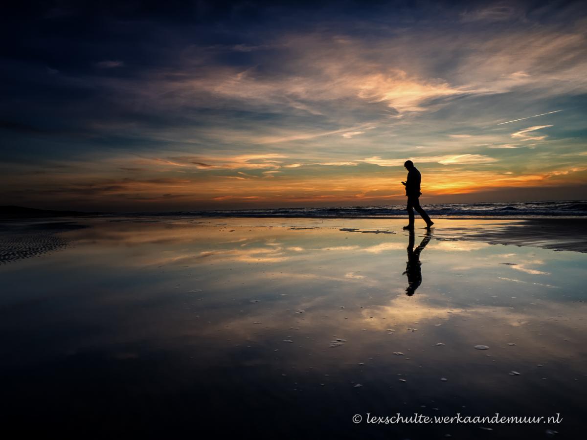 Selfie bij zonsondergang aan de noord Deense kust.
