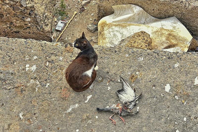 straatkat met buit in Cádiz in Frankrijk