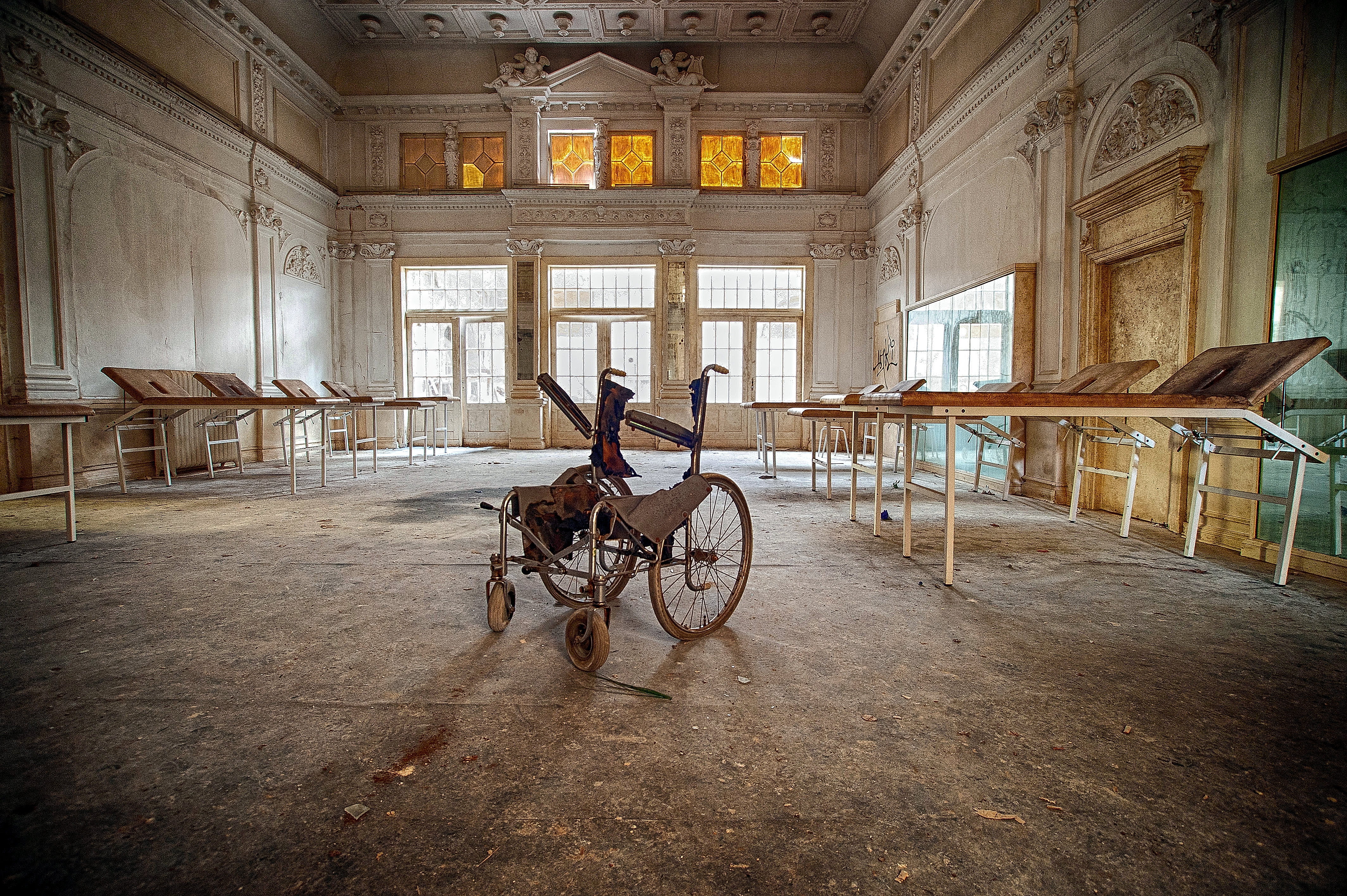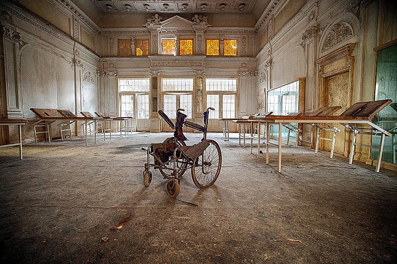 Foto gemaakt in een oud sanatorium in de voormalige DRR, het was heel donker binnen, maar ik kon gebruik maken van mijn flitser die ik achterin bij de ramen neergelegd heb. Zo krijg een mooi gelijk licht met een vleugje tegenlicht effect.