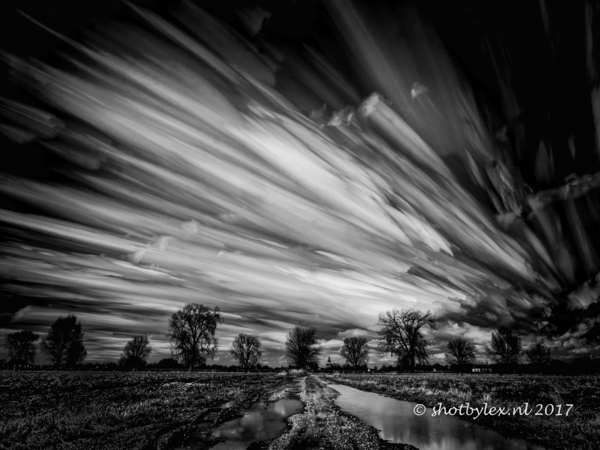 Lange sluitertijd van de dreigende wolkenluchten...