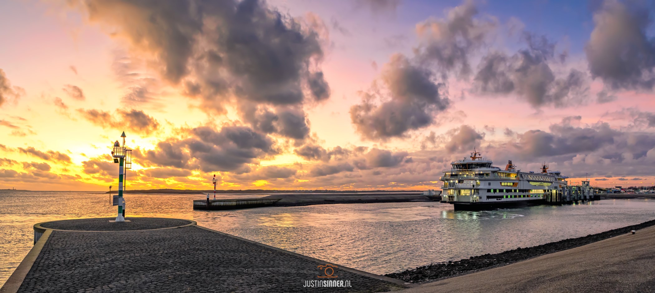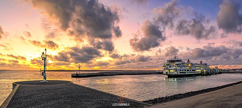 Teso haven en zonsondergang op Texel.