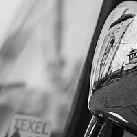 Mijn oog viel ineens op de weerspiegeling van het schip in de spiegel van een tuktuk op Texel. Zelf ben ik erg tevreden over de scherpte-diepte in deze foto.
