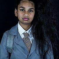 Tharanika in kostuum tijdens een voorstelling van haar dansschool