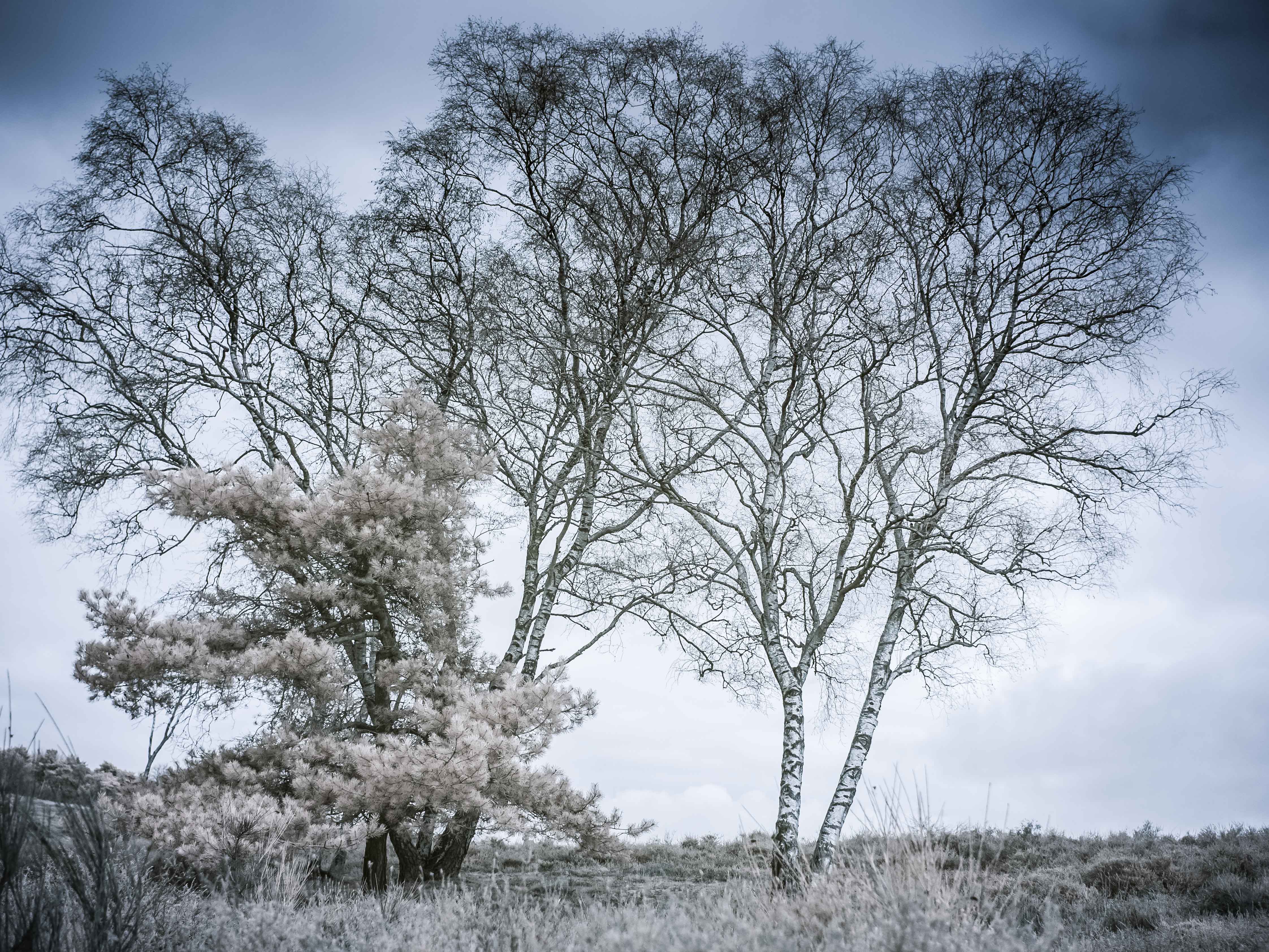 Experiment met Infrarood fotogarfie omegzet naar False Colour. De 'valse kleuren' geven het geheel een wat vervreemdend gevoel.
