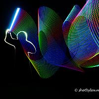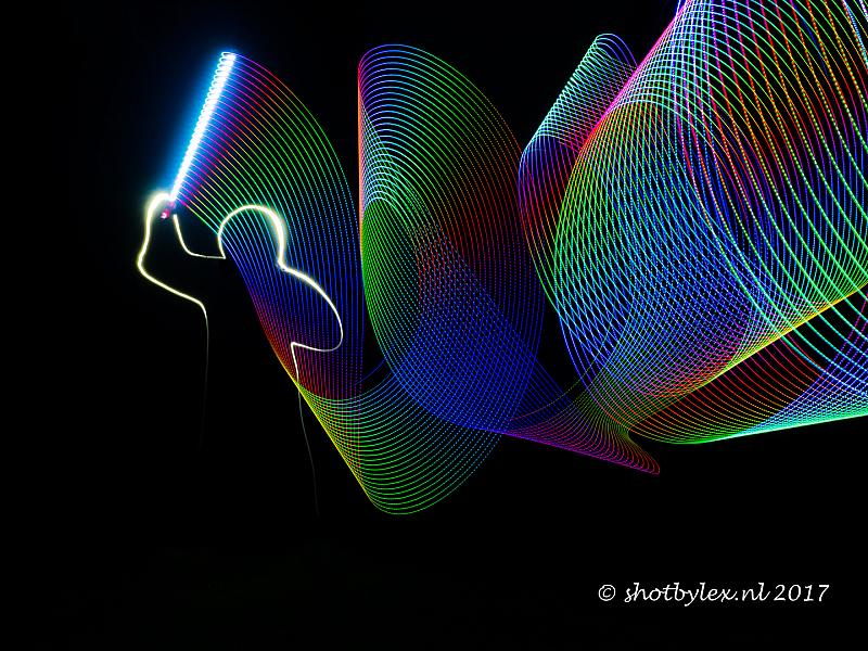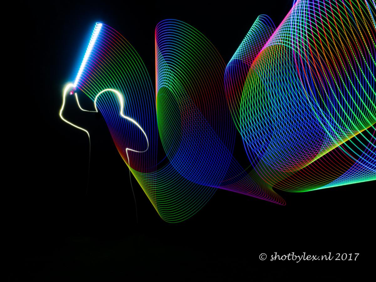 Spelen met een zaklamp en een strip met leds. Lightpainting
