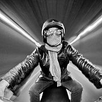Statief voor op de scooter getapet, fisheye lens en flitser gemonteerd. De flits op het tweede gordijn zodat ik bevries maar de sluiterlijd langer is om de beweging vast te leggen. En dan maar op en neer rijden door een kleine tunnel onder de snelweg door, met de camera op zelfontspanner. ZO rijd ik elke dag naar mijn werk en weer terug.