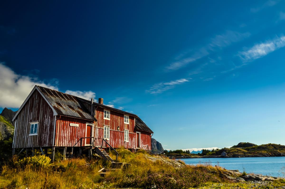 Oud en verlaten vissershuis in Henningsvaer op de Lofoten.