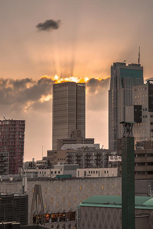 Tijdens de zonsondergang gemaakt in Rotterdam