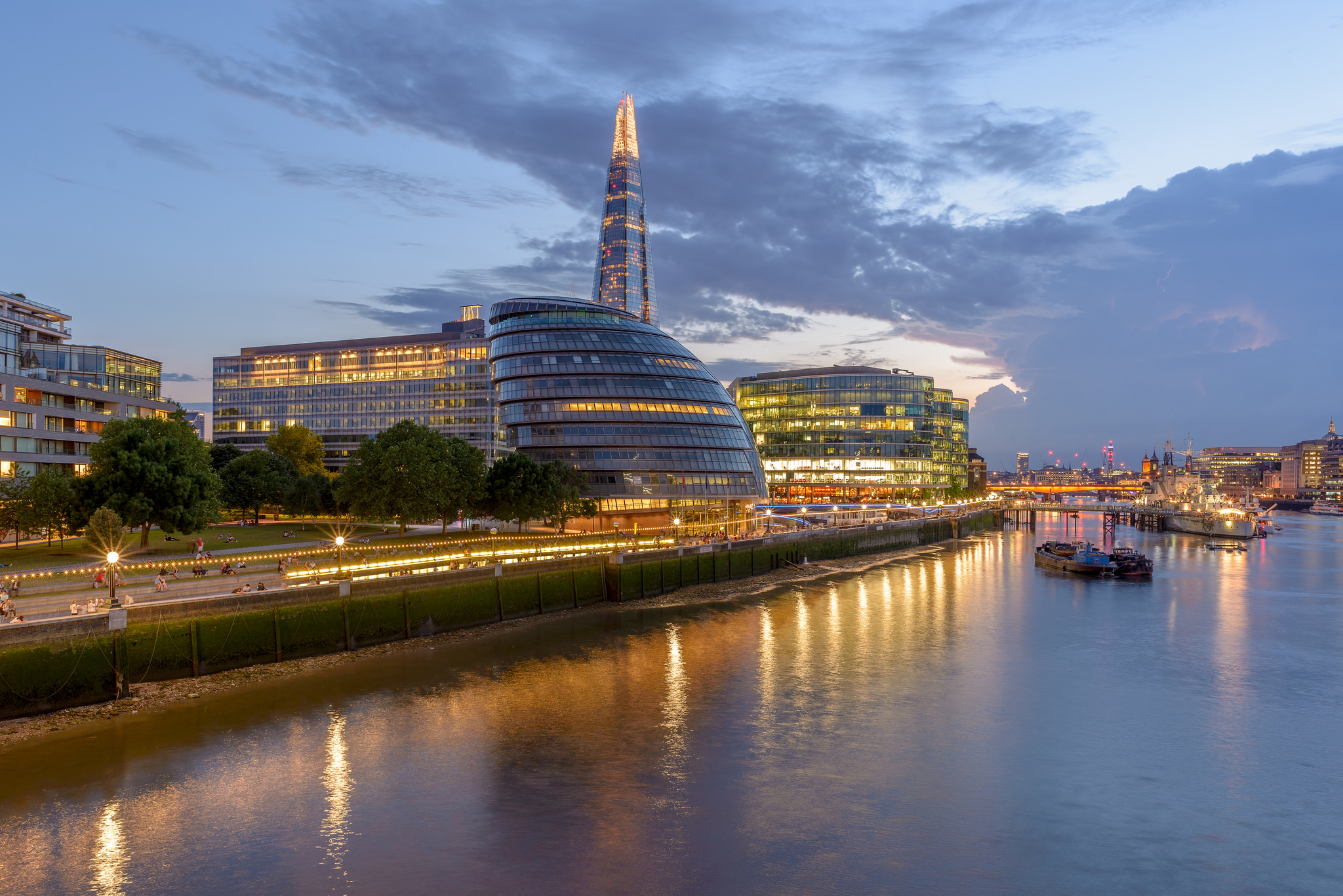 Onlangs een paar dagen naar Londen geweest. Deze foto is gemaakt vanaf de Tower Bridge met een lange sluitertijd. Het was een fantastische avond. Rechts van de foto was er zelfs onweer zichtbaar.