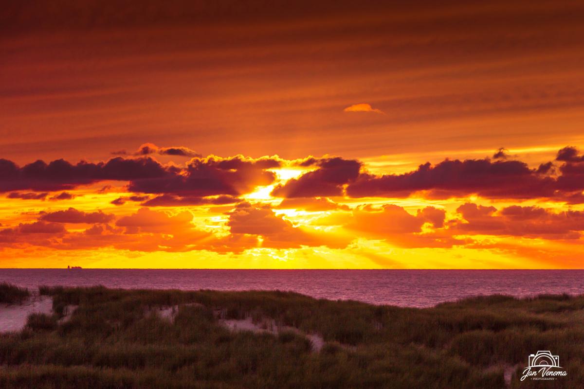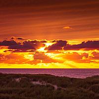 Foto van een prachtige zonsondergang genomen vanaf een duin in de Slufter op Texel