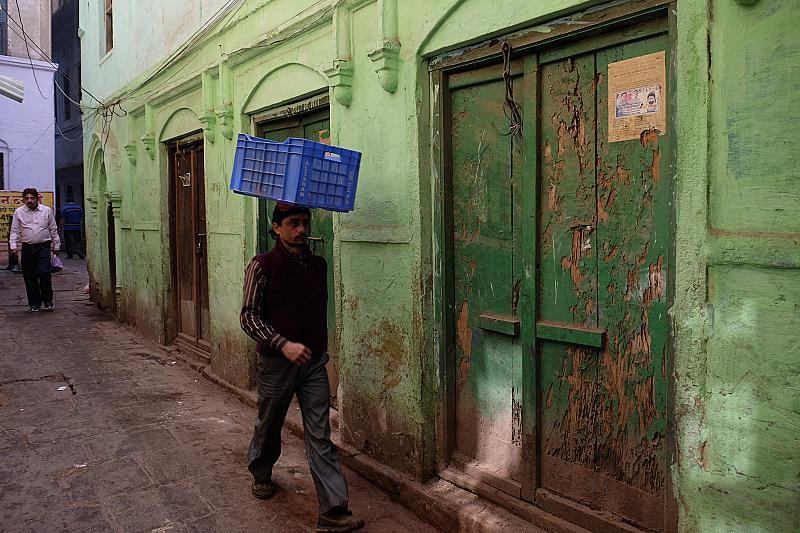 Het thema van de fotowedstrijd is groen, en ik denk dat deze muur in Varanasi-India daar wel aan voldoet.De twee personen geven er nog even een ander accentje aan