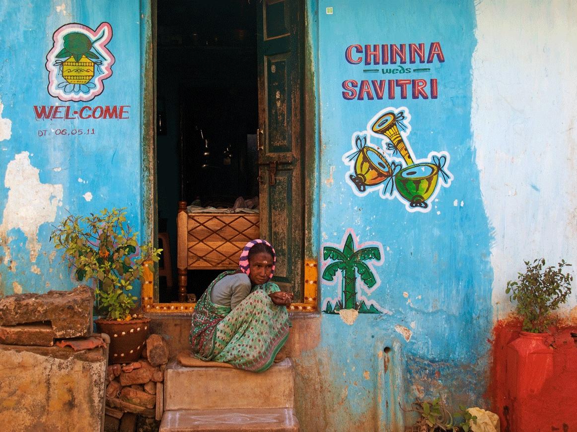 Dit vrouwtje zat voor haar huis in een klein plaatsje in Orissa, India.