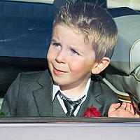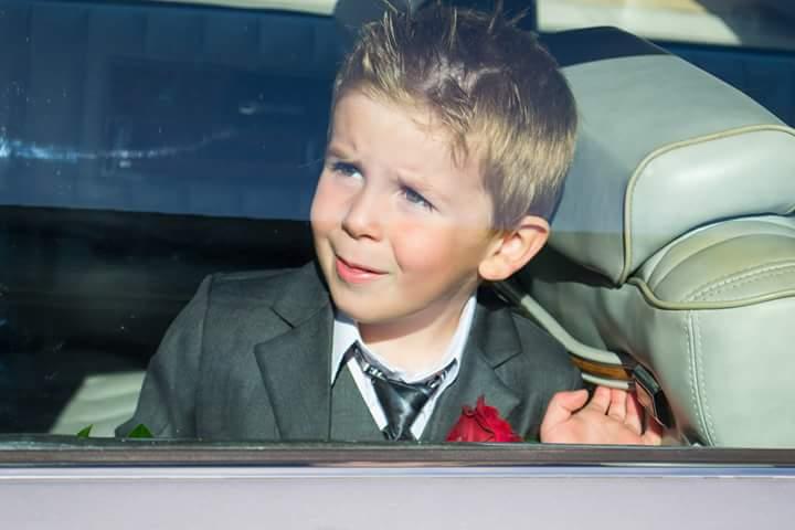 Tibo in bruidswagen, helemaal klaar voor het huwelijk van papa & mama