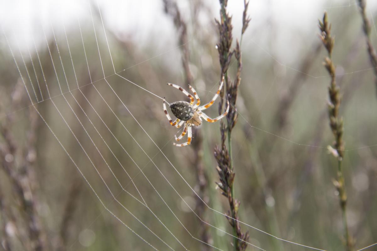 De tijgerspin was al druk met zijn web bezig.