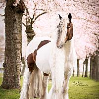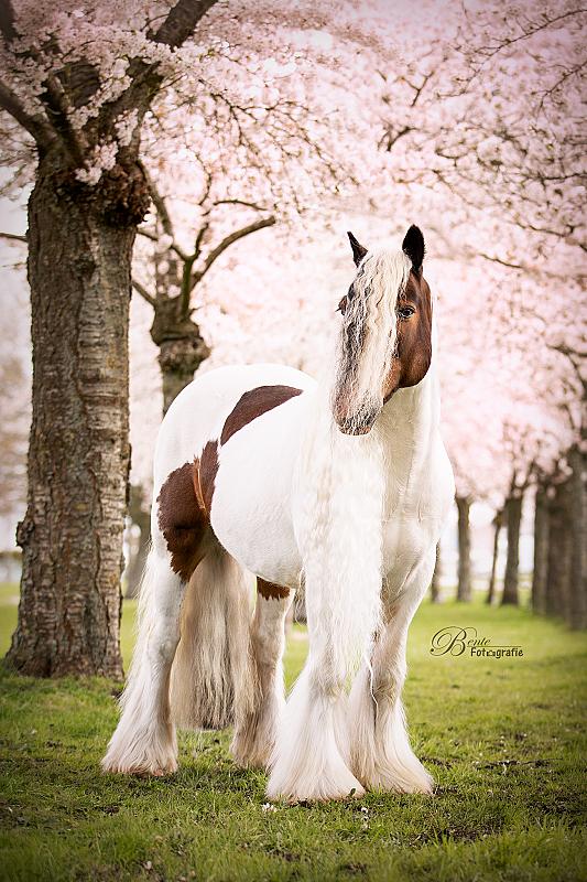 Deze prachtige tinker genaamd Nolan stond model onder de bloeiende bloesembomen