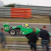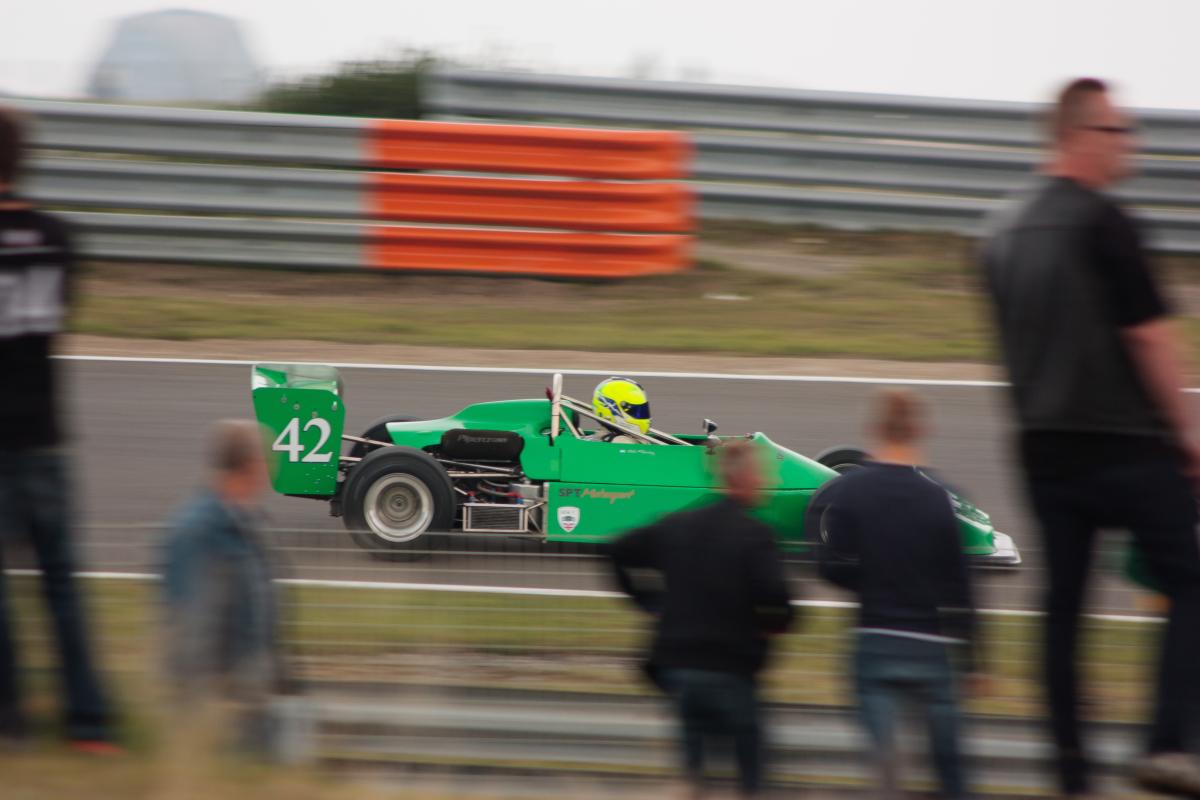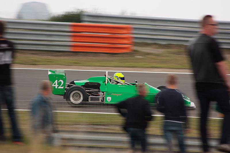 De essentie van beweging wordt in deze foto gesymboliseerd door de stilstaande toeschouwers in contrast met de voortrazende bolide.