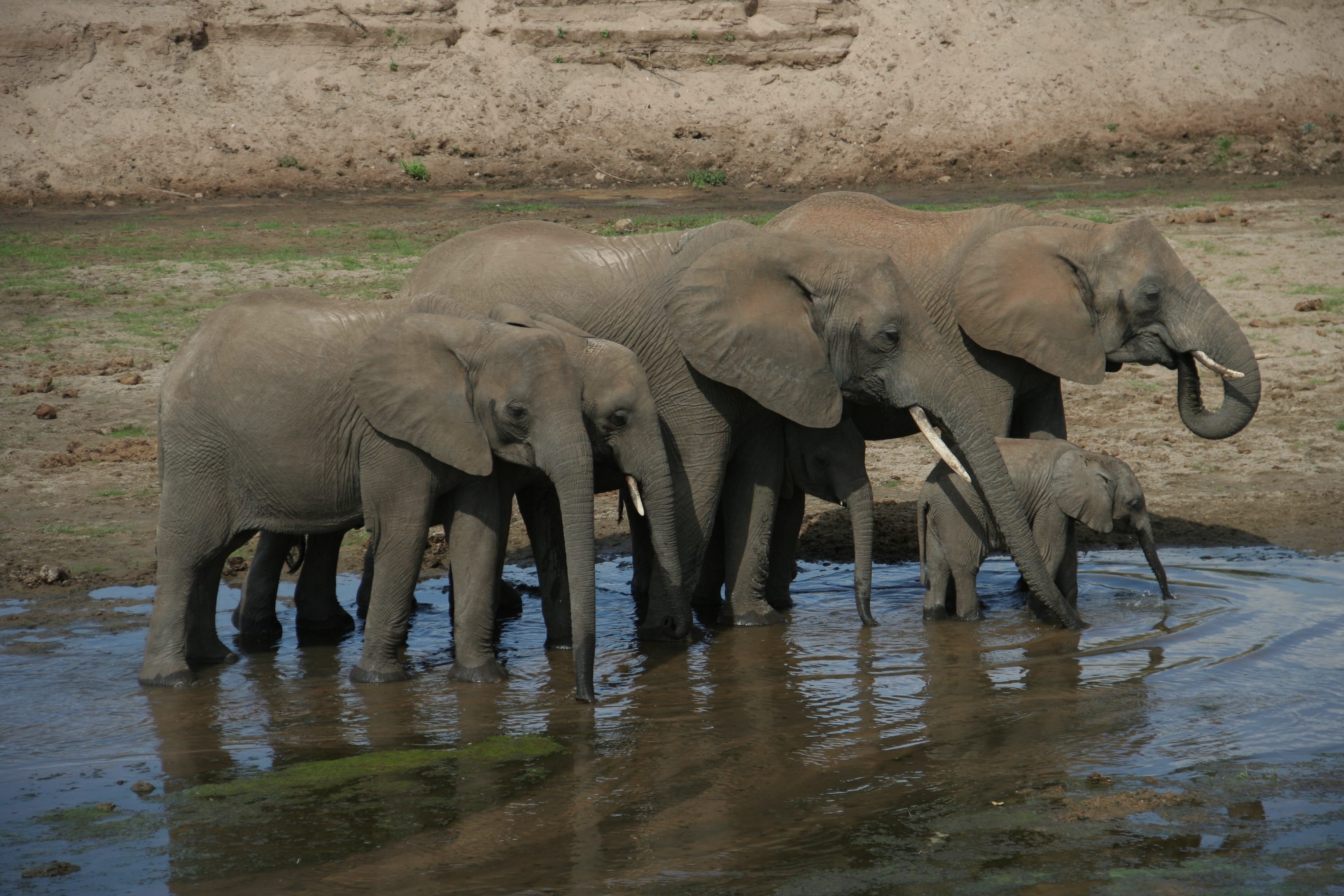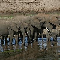 Family Olifanten in Tarangire NP Tanzania aan het drinken en afkoelen
