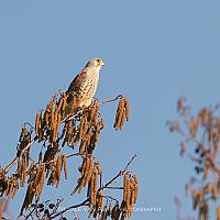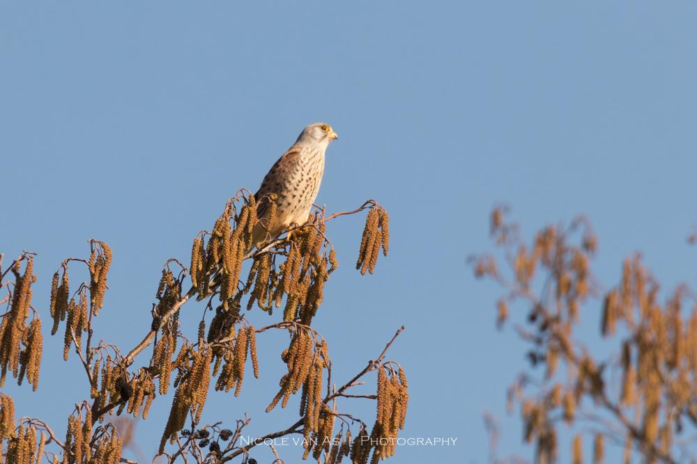 Een Torenvalk op de uitkijk. De Buizerd vloog over, die werd goed in de gaten gehouden.