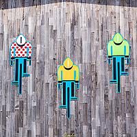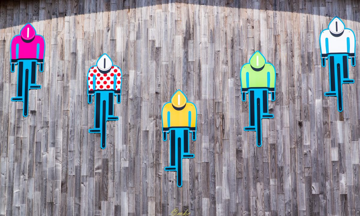 Onderweg van de bekende kerk in Sainte-Mere-Eglise (Frankrijk) naar de camping kwamen we deze muurschildering van 5 wielrenners tegen. Mijn gedachten gingen meteen uit naar de fotowedstijd "vijf". Hoe toepasselijk in deze drie weken van de Tour de France.