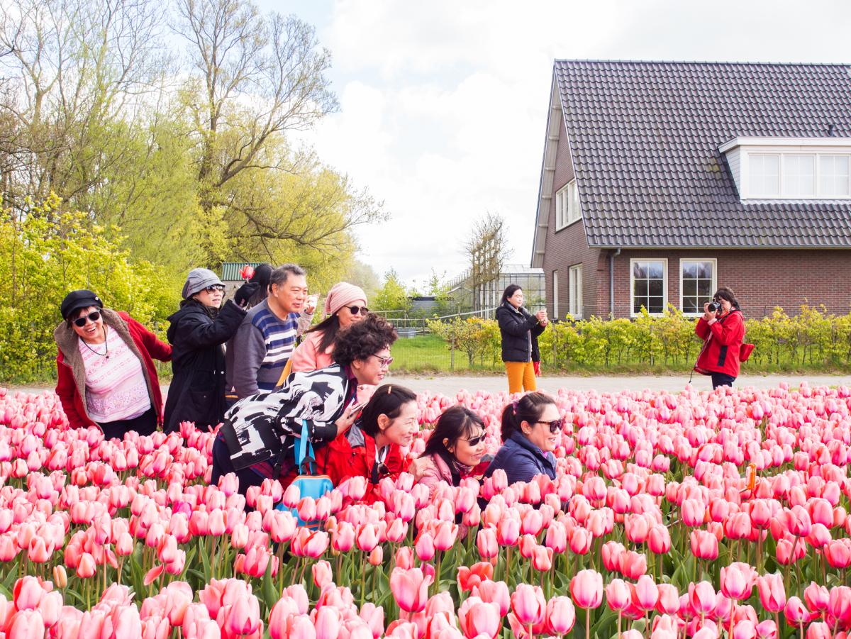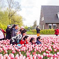 Een groep thaise toeristen kan maar niet genoeg krijgen van onze hollandse tulpen