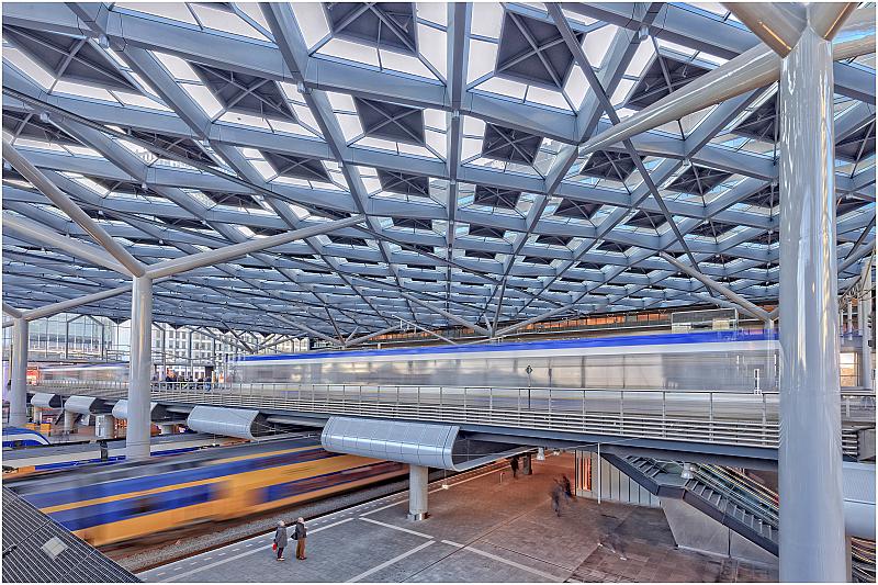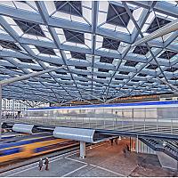 Druk verkeer op Den Haag Centraal Station, dat na een grondige renovatie onlangs is heropend.