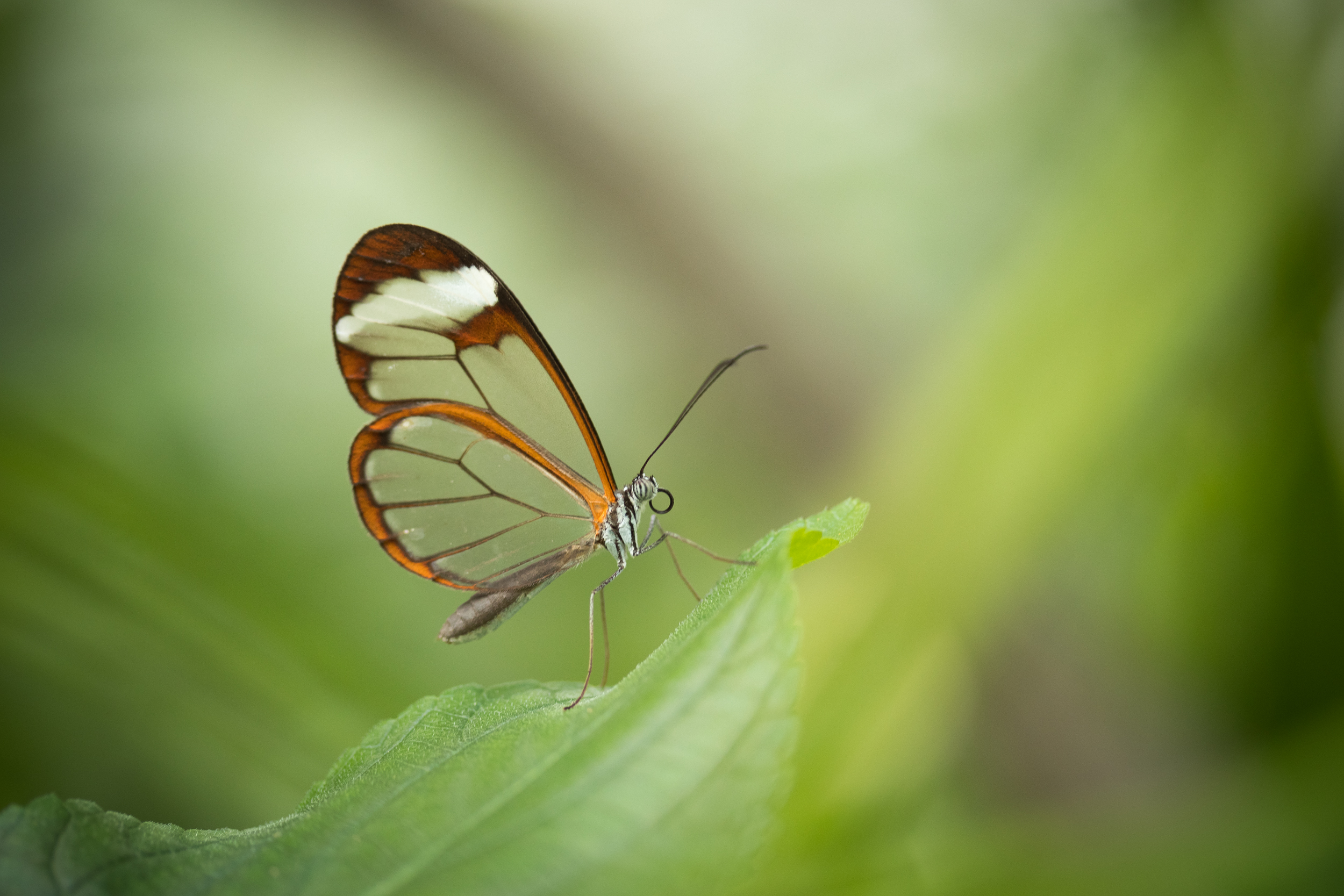 Nog nooit mocht ik deze prachtige glasvlinder fotograferen. Wat is dat lastig, zo klein. Door de transparante vleugels heeft mijn macrolens moeite met scherpstellen. Handmatig was het beste.