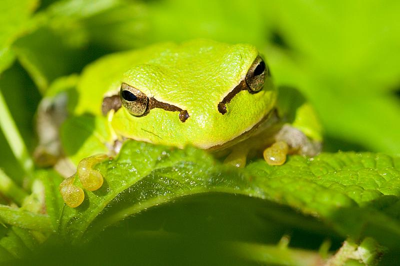 Niets is mooier groen dan een boomkikkertje in de zon.