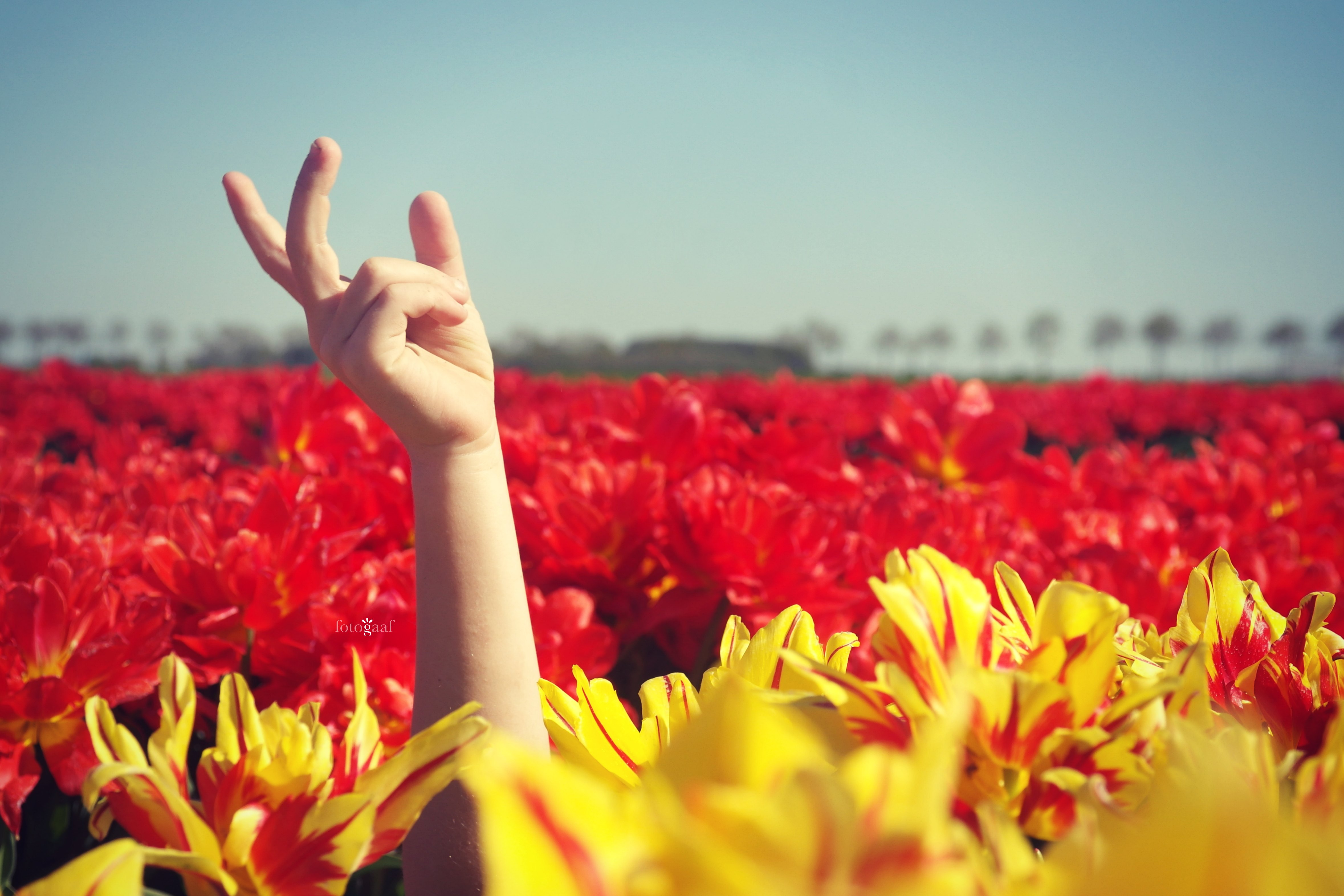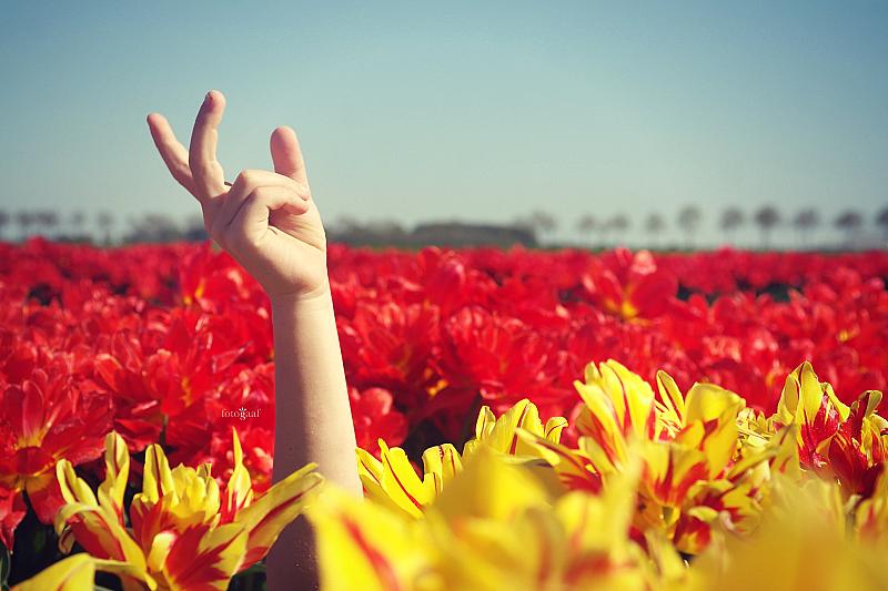 Tussen de prachtige tulpen in het Groninger landschap.