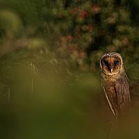 Hier zat de zwarte kerkuil verscholen tussen de bladeren