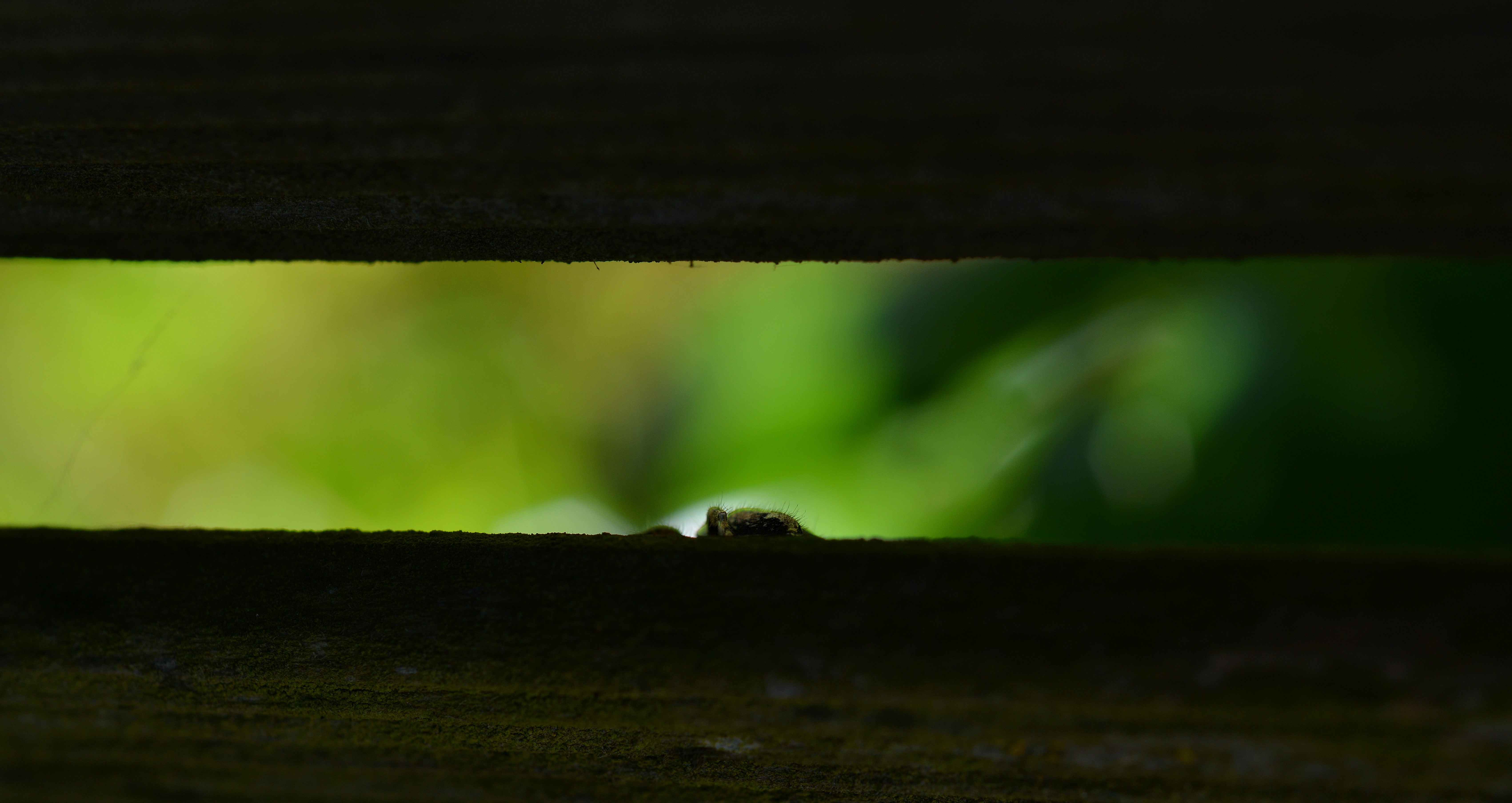 ..deze spin verstopt zich snel aan de andere kant van de schutting.