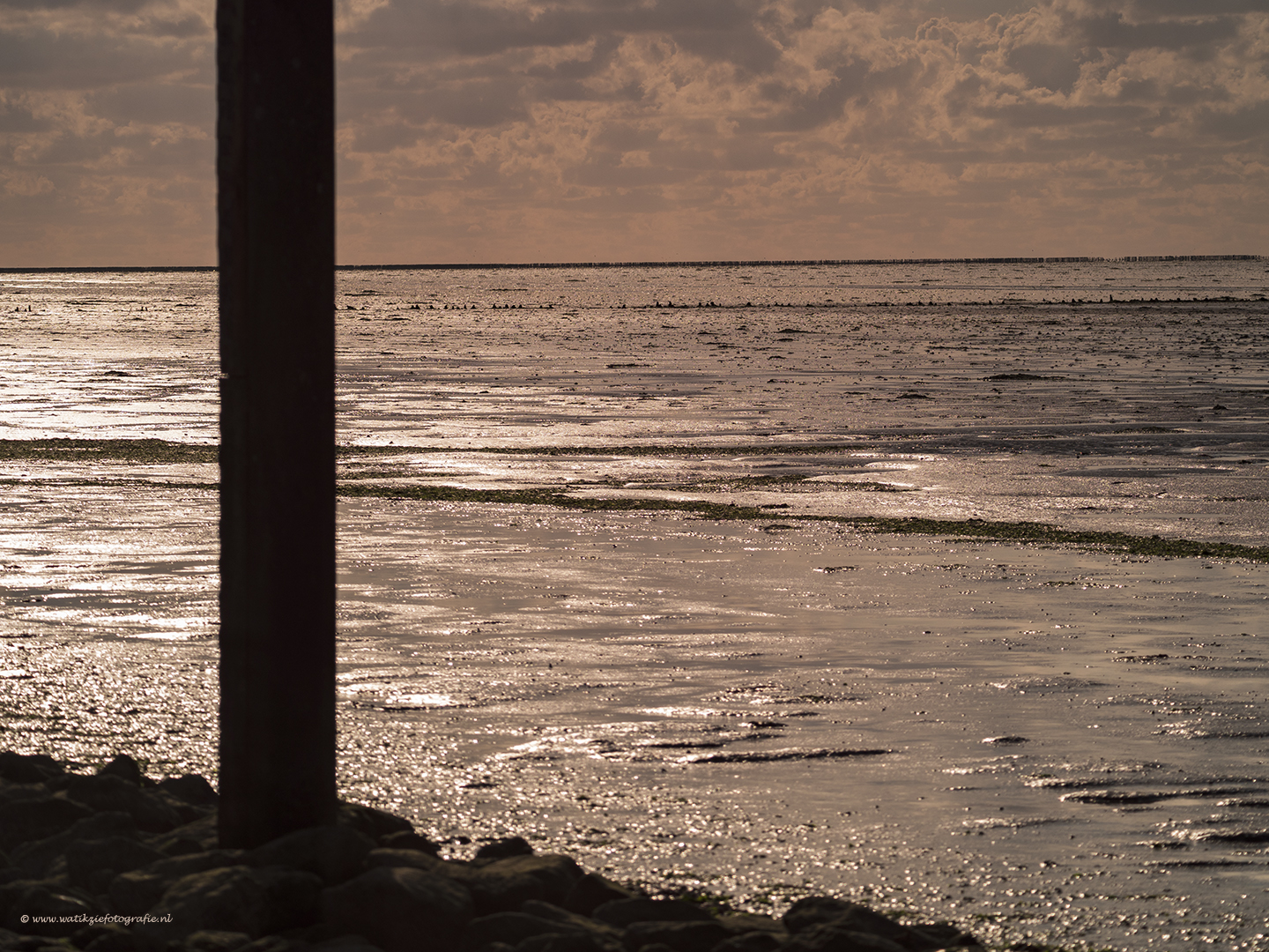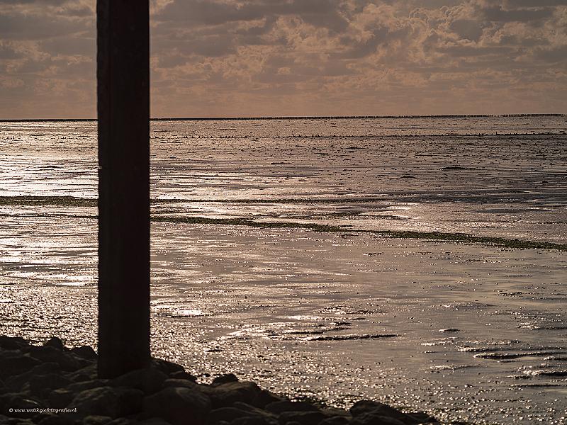 Avond aan het wad....er stonden een paar supergrote palen in het water....deze leken erg groot bij eb.