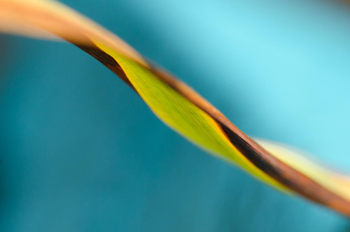 Een mooi gekleurd en gedraaid blad van de Gele Lis welke zich prachtig leent voor eenfijne abstracte voorstelling