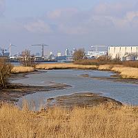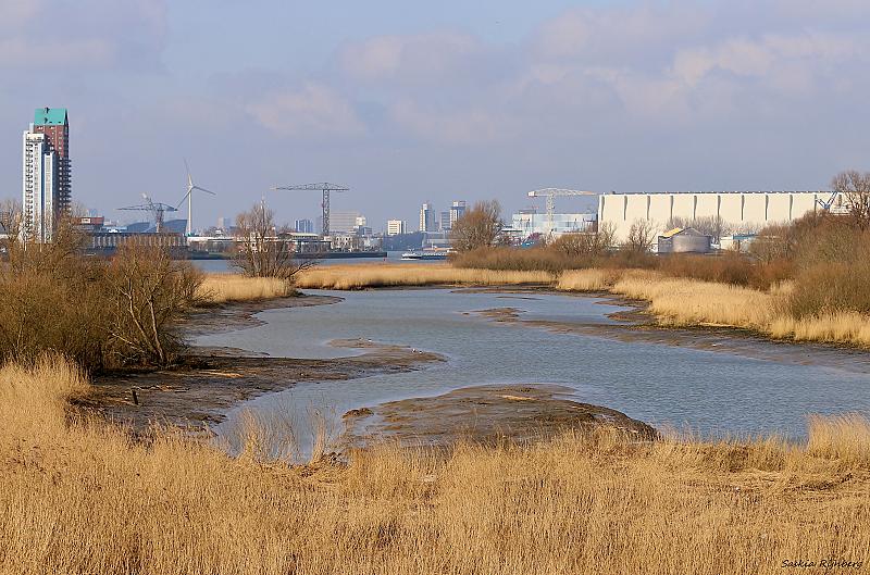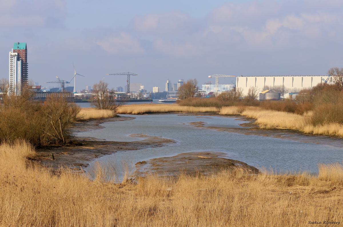 Het uitzicht op Rotterdam, vanaf de Beverbrug in het natuurgebied De Zaag in de Krimpenerwaard.