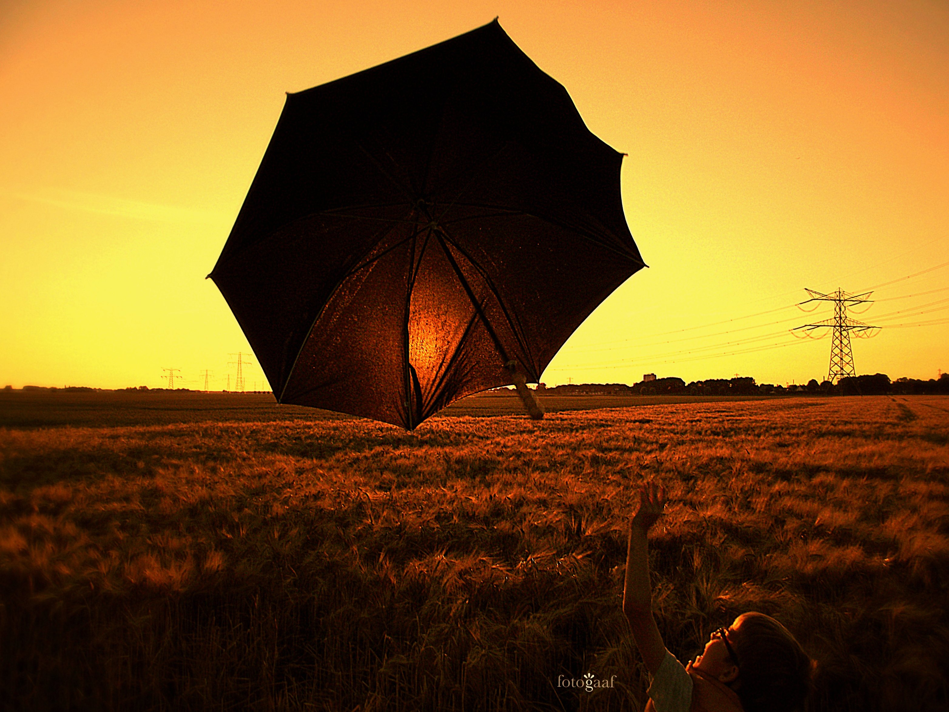 Een mooie zomeravond, mijn zoon speelt met de paraplu en ik heb dit bijzondere moment kunnen vastleggen.