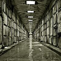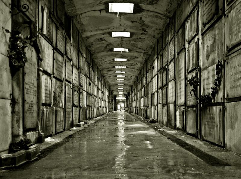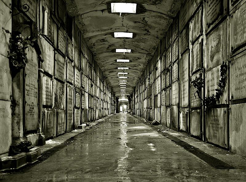 De foto werd genomen in de grafgalerijen van het kerkhof van Laken (B).