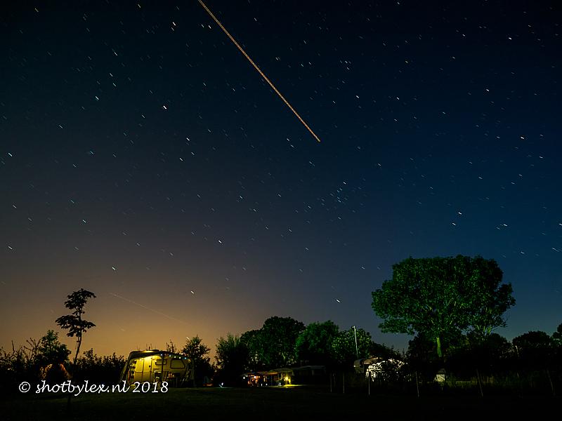 Camperen onder de sterren! En als het vakantie is, is het helemaal niet erg om onder het genot van een drankje te wachten op het donker...